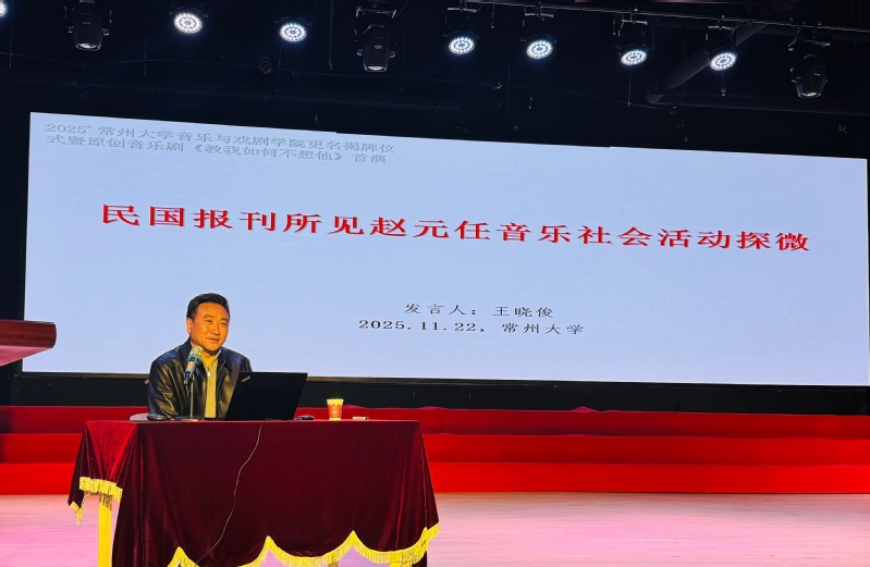 随后,南京艺术英皇 音乐英皇 院长王晓俊教授以《民国报刊所见赵元任音乐社会活动探微》为题,依托《晨报》《申报》《中央日报》等民国报刊文献,系统梳理了赵元任在音乐演讲、音乐表演、教材编订与社会音乐建设等方面的丰富实践。他通过赵元任讲演贝多芬生平、在中国科学社年会上自弹自唱、参与全国音乐教材编审、筹备全运会歌咏团等案例,展现了赵元任作为“非音乐科班出身”的音乐家,如何以语言学家的敏锐与责任感,推动中国音乐教育的规范化、社会化与本土化发展。