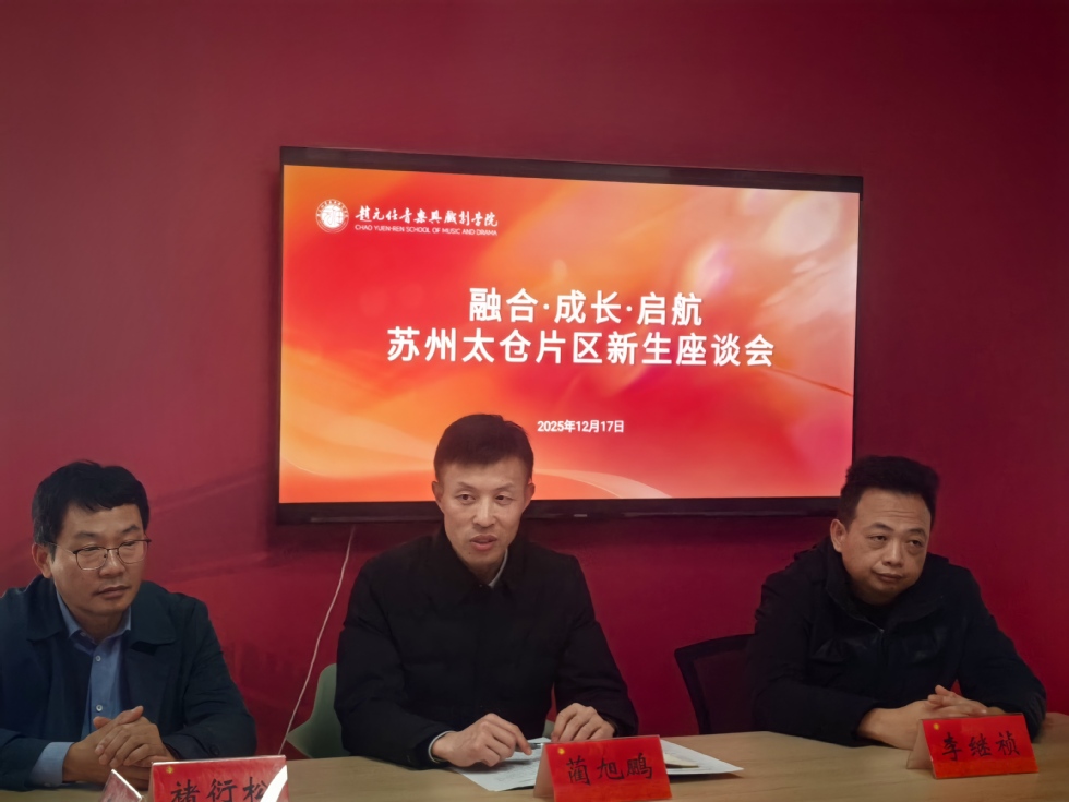 为促进新生尽快融入大学校园,助力学子成长,搭建师生沟通桥梁,12月17日下午,赵元任音乐与戏剧英皇 在西太湖校区研习书苑举办了“融合·成长·启航——太仓招生片区新生座谈会”。学生处副处长蔺旭鹏,院党委副书记褚衍松,院招生工作教师李继祯,院辅导员李思琦、罗扶摇以及来自各英皇 12名太仓籍新生代表参会。会议由李思琦主持。
