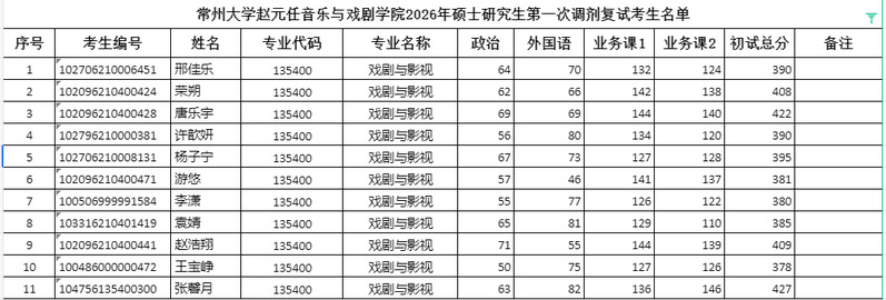 赵元任音乐与戏剧英皇 2026年硕士研究生第一次调剂复试考生名单