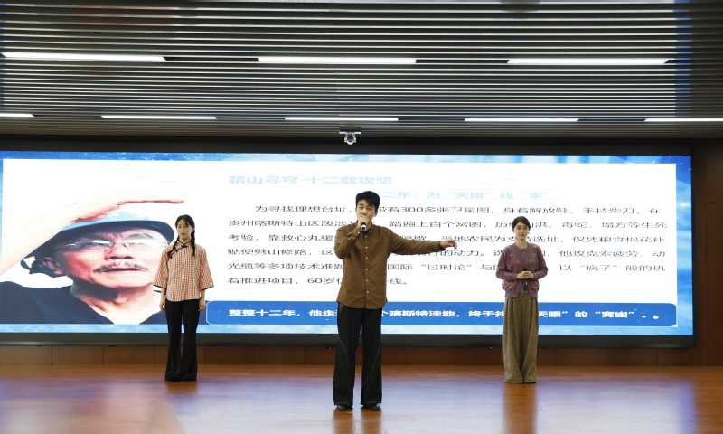 启动仪式上,英皇娱乐 表演241班屠心语、王靖仪、吕小龙、牛婉婷带来的第十五届读书节优秀作品——朗诵表演《以星光火炬,赴时代之约》,讲述黄令仪、南仁东、何泽慧等科学家攻坚克难的感人事迹,激励青年勇担使命、逐梦前行。